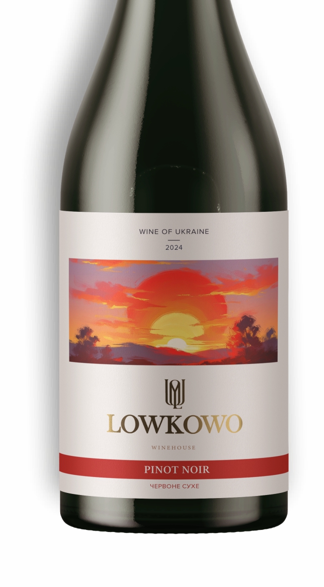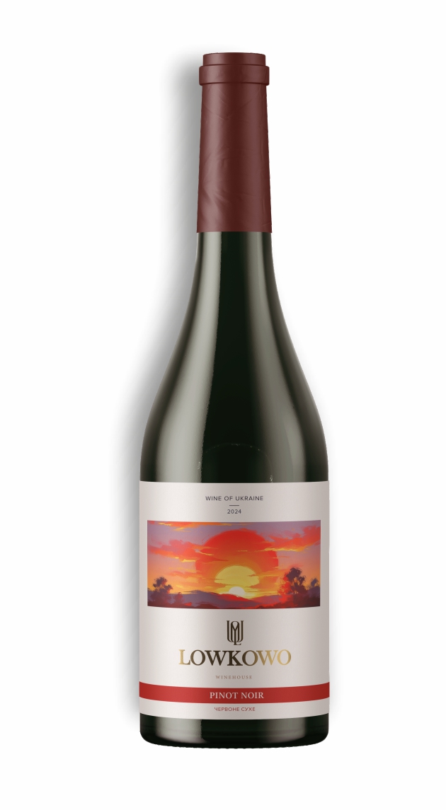 Сухе червоне вино, виготовлено з сорту винограду Піно Нуар.